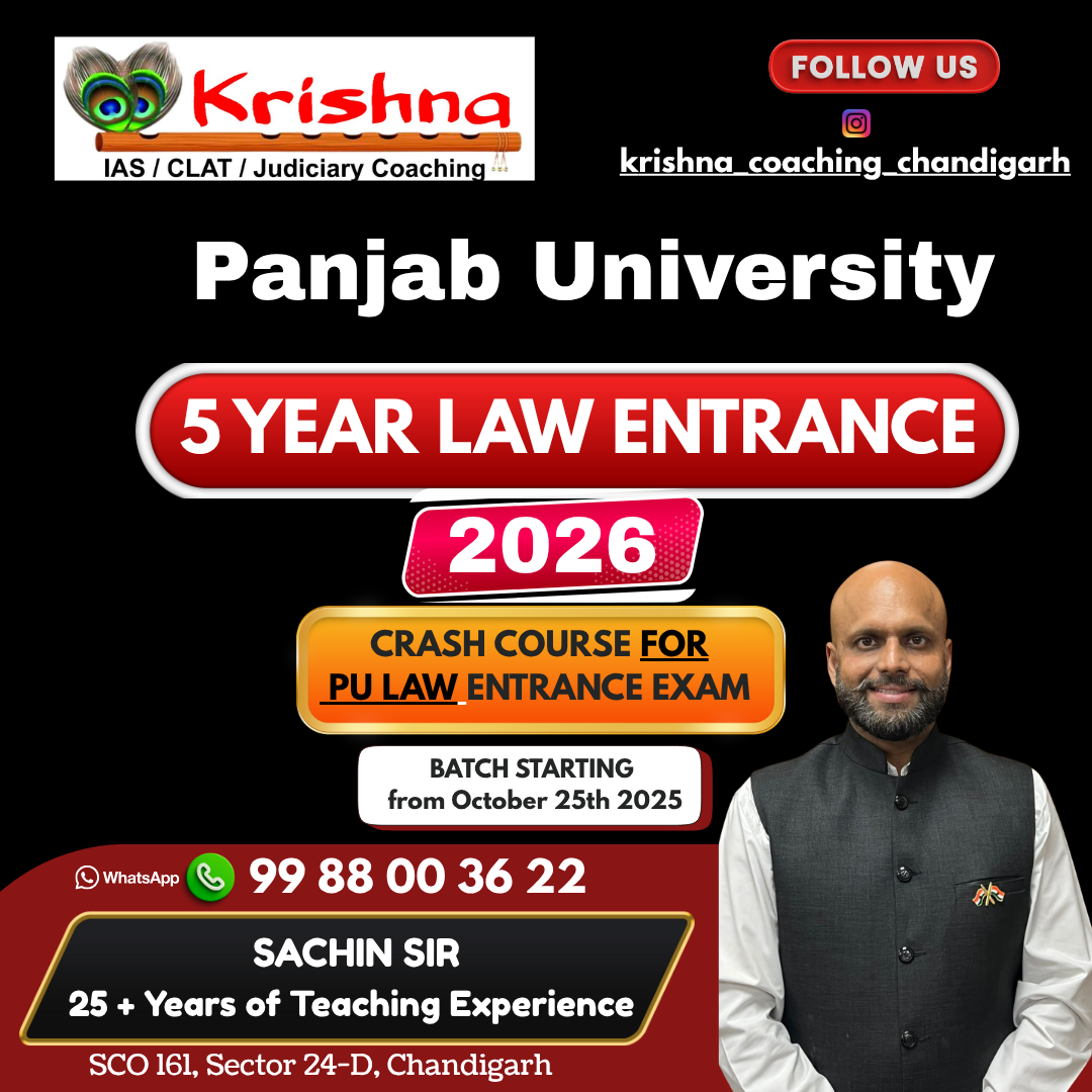 “Prepare for Panjab University 5-Year Law Entrance Exam 2026 with Krishna CLAT Coaching!” Dreaming of a career in law? The Panjab University 5-Year Law Entrance Exam 2026 is your first step, and Krishna CLAT Coaching is here to guide you to success. Our 5-Year Law Entrance Crash Course is designed to: ✅ Cover the entire PU LAW syllabus in detail ✅ Provide expert strategies for cracking the exam ✅ Offer personalized doubt-solving sessions ✅ Include regular mock tests & practice papers With limited seats, early preparation is the key! Join us and build a strong foundation for your legal career. 📞 Contact us today to enroll! 99 88 00 36 22 Krishna CLAT Coaching, based in Chandigarh, is one of the most trusted names in Law Entrance preparation. We specialize in CLAT, AILET, PU LAW, and other top law exams, and have guided numerous students to top ranks through our dedicated approach, expert faculty, and consistent test series. If you are serious about your Law career, this is the right time and the right place! 📍 Visit us: Krishna CLAT Coaching, Chandigarh. SCO 161, Sector 24-D, Chandigarh 📞 Call/DM us for Admissions | Limited Seats Available! 99 88 00 36 22 #PULaw2026 #KrishnaCLATCoaching #LawEntranceCrashCourse #PanjabUniversity #LawAspirants #CLATCoaching #ChandigarhCoaching #FutureLawyersers #legaleducation #PULaw2026 #KrishnaCLATCoaching #LawEntranceCrashCourse #PanjabUniversity #LawAspirants #CLATCoaching #ChandigarhCoaching #FutureLawyers #LegalEducationIndia #PULawEntrance2026 #KrishnaCLATCoaching #LawCareer #ExamPreparation #futurelawyer