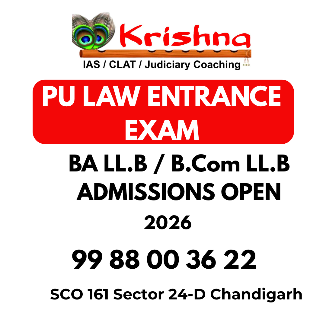 🎯 PU LAW ENTRANCE EXAM 2026 | START YOUR LAW PREPARATION TODAY Planning to appear for the PU Law Entrance Exam 2026? Panjab University offers top law programs like 3-Year LL.B and 5-Year Integrated Law, and the right preparation can make a big difference in your performance. At Krishna CLAT Coaching, Chandigarh, students get a structured and focused learning environment designed specifically for law entrance exams. The program covers the complete syllabus with daily classes, regular revision, and continuous testing to help students stay on track. 📚 Courses Offered: • PU 3-Year LL.B Entrance • PU 5-Year Integrated Law Entrance 💻 Mode: • Offline Classes (Chandigarh) • Online Live Classes ✨ What You Get: ✔️ Daily Classes & Regular Tests ✔️ Updated Study Material & Printed Notes ✔️ Daily Mock Tests + OMR Practice ✔️ Previous Year Questions Practice ✔️ Doubt Clearing Sessions ✔️ Performance Analysis & Mentorship 📖 Subjects Covered: • Legal Aptitude • General Knowledge & Current Affairs • English Language • Logical Reasoning 👨🏫 Learn from experienced faculty with a focus on concept clarity and exam strategy. Improve your accuracy, speed, and confidence with regular practice and guidance. 📢 New Batches Starting Soon | Limited Seats 🎓 Demo Classes Available 📞 Call Now: 9988003622 Start early, stay consistent, and prepare with the right guidance for PU Law Entrance Exam 2026. #PULawEntrance2026 #PunjabUniversityLaw #KrishnaCLATCoaching #LawEntrancePreparation #PUExam #LawCoaching #LLBEntrance #LawStudents #ChandigarhCoaching #MockTests #LegalAptitude #LawCareer