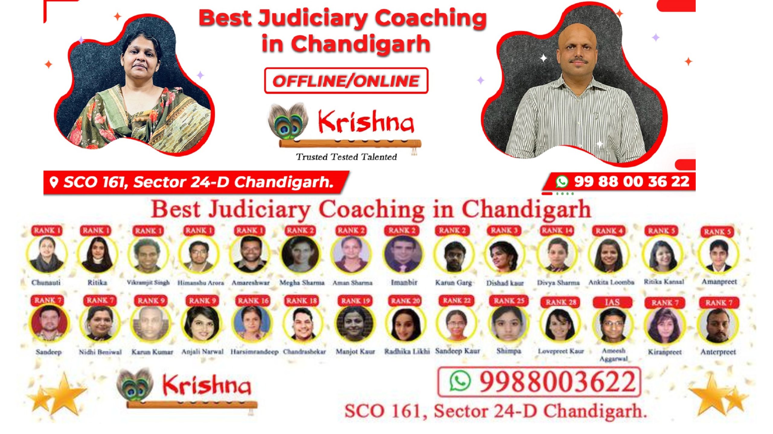 Schedule of lectures in Judiciary coaching for Wednesday 21 June 2023 8: 30 a.m to 10:30 a.m Contract act by Sachin Sir 10:30 a.m. to 12:30 a.m. Muslim Law by Anjali mam Websites : www.krishnastudyacademy.com and www.krishnaias.com www.facebook.com/CLATHelpline Krishna SCO 161 Corner Showroom Sector 24D Chandigarh 9988003622 Best Coaching for Judicial Services, IAS-PCS-HCS-HAS Civil Services and CLAT LAW- ENTRANCE in Chandigarh Best Coaching Institute for Judicial Services, IAS-PCS-HCS-HAS Civil Services and CLAT LAW- ENTRANCE Exams in Chandigarh Best Judicial Coaching in Chandigarh Online coaching for IAS PCS in Mohali Online Judiciary coaching in Chandigarh Online coaching for CLAT-LAW Entrance in Chandigarh Spoken English classes in Chandigarh Special batches for Essay writing Special batches for Answer Writing for IAS PCS Exam in mohali Special batch for English for judicial Mains in Chandigarh Foundation Course for civil services- IAS/PCS for school students on weekends in Chandigarh Best Coaching for Civil Services Exams in Chandigarh Coaching for Jammu and Kashmir - KCS JUDICIAL Kashmir civil services judicial branch exam coaching starting Best Career Counselling available Fresh batches for HCS and PCS Judicial Interview training starting soon Daily Language Classes - English Hindi and Punjabi3 Very good coaching teachers teach very well practically nd theoratically nd also provide good contents Krishna Judiciary Coaching, AN ABODE OF EXCELLENCE IN EDCATION was founded more than two decades ago with the stated goal and vision of not only providing best quality education in UPSC Coaching, Judiciary Coaching and CLAT-Law Entrance Coaching, but also empowering the nation to be responsible, dutiful, capable and committed to give officials. Under the competent guidance of its directors Dr. Anjali Goyal and Sachin Goyal, the academy has produced front-runners year after year for the past two decades. With more than 600 top selections in IAS, IPS, IRS, PCS, HCS, DJS, GJS, this institute has proven that consistent, dedicated and disciplined hard work by students and teachers is the only key to success. Krishna Coaching is the best CLAT coaching institute in Chandigarh known for Online CLAT Law Admission Coaching, Five Year Law Admission Coaching for PU Chandigarh, Five Year Law Admission Coaching, BALLB Entrance Examination Coaching, AILET Coaching, Online Judiciary Coaching, Online Legal Coaching, Online JMIC Coaching, Best CLAT Law Entry Coaching in Chandigarh, Best PU CET LAW admission Coaching in Chandigarh, Best CLAT Coaching in Chandigarh, IAS Coaching in Chandigarh, PCS- Coaching in Chandigarh, CLAT Coaching in Chandigarh, LAW Coaching in Chandigarh, Law Entrance Coaching in Chandigarh, Judicial Coaching in Chandigarh, Best Legal Instruction School SLI, known for Judicial Coaching is Krishna in Sector 24 Chandigarh, Judicial Coaching in Chandigarh, IAS Courses in Chandigarh, Best IAS Coaching in Chandigarh, Best PCS Coaching in Chandigarh, Best Law Coaching in Chandigarh, CLAT Coaching by Goyal sir, IAS Coaching in Mohali, PCS Coaching in Panchkula, CLAT Coaching in Mohali, CLAT Coaching in Panchkula, HCS Coaching in Panchkula, Legal Coaching in Zirakpur, CLAT Coaching in Zirakpur credentials Krishna coaching played an important role in my preparation in many ways. Lectures by Anjali Mam, Nandini Mam, Bajaj Sir and Goyal Sir are worth appreciating. Being taught by such living legends of law was like a lifetime opportunity not worth missing. From the preliminary round to the interview, the academy was an essential part of my preparation. Especially in the preliminary and main examinations, the procedural part of Krishna is unsurpassed. All students receive newspaper daily. This was very beneficial to improve my English skills. Answer writing courses with both strategy lectures and quizzes. Online availability is the most important part that allows aspirants from different parts of the country to access it. Timely feedback, diversification of questions in tests are provided, which contributes to comprehensive preparation. From the bottom of my heart I advise all aspiring aspirants to join Krishna and feel the difference. Akhil Goyal sir, teaches in a very interesting way. His analysis of recent judgments is unprecedented and unmatched.- Harleen. Krishna Coaching Chandigarh 9988003622 Best Judiciary Coaching in Chandigarh Best CLAT Coaching Institute Best Law Coaching in Chandigarh Best CLAT- Law Entrance Coaching in Chandigarh Best PU CET LAW Entrance Coaching in Chandigarh Best CLAT Coaching in Chandigarh IAS Coaching in Chandigarh PCS Coaching in Chandigarh CLAT Coaching in Chandigarh LAW Coaching in Chandigarh Law Entrance Coaching in Chandigarh Judicial Coaching in Chandigarh Best School of Legal Instructions SLI known for Judiciary Coaching is Krishna in Sector 24 Chandigarh Judiciary Coaching in Chandigarh IAS Classes in Chandigarh Best IAS Coaching in Chandigarh Best PCS Coaching in Chandigarh Best Law Coaching in Chandigarh CLAT Coaching by Goyal sir Online judiciary coaching Krishna Coaching was established more than two decades ago with an avowed aim and vision of not only imparting quality education in UPSC Coaching, Judiciary Coaching and CLAT- law Entrance Coaching but also giving responsible, dutyful, able and dedicated officers to the nation. Under the able guidance of its Directors Dr. Anjali Goyal and Sachin Goyal the academy has been producing maximum toppers year after year in the last two decades. Crafting more than 600 top selections in IAS, IPS, IRS, PCS, HCS, DJS, GJS this institute has proved that consistent, dedicated, disciplined hardwork of students and teachers is the only key to success. Krishna Coaching is the Best CLAT Coaching institute in Chandigarh, known for Online CLAT Law Entrance Coaching, Five year Law entrance coaching for PU Chandigarh, Five year Law entrance coaching, BALLB Entrance Exam Coaching, AILET coaching, Online Judiciary Coaching, On